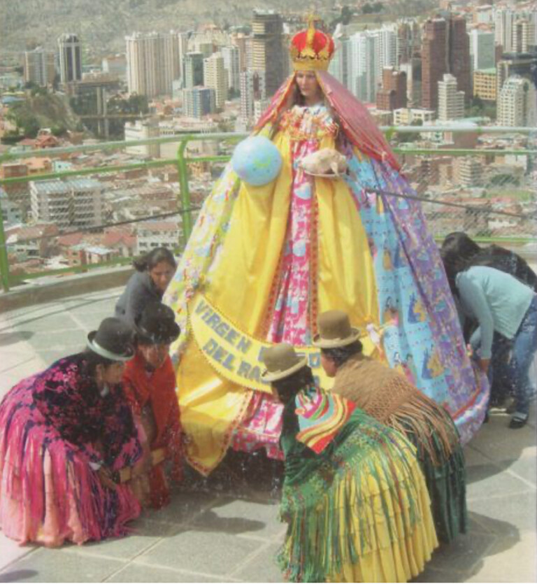Virgen Barbie 2010 / 16mn À La Paz, une procession transporte la Vierge Barbie, figure sacrée et provocatrice surnommée « sainte patronne du racisme », jusqu’à un mirador dominant la ville. Entourée d’un groupe de femmes, elle prend la parole...